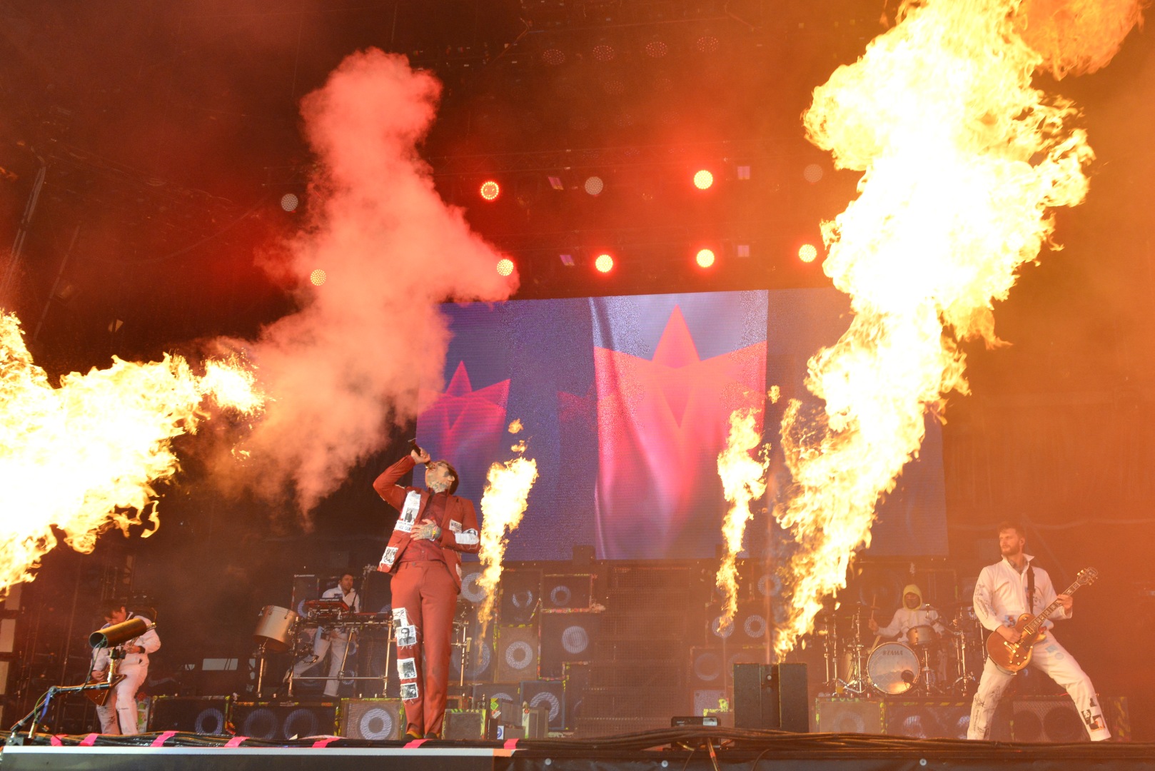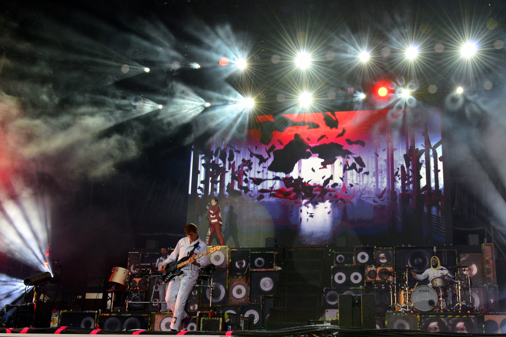 Bela wippt nach den Openern „Unrockbar“ und „Wie es geht“ als glitzernder Showmaster über die Bühne, während Farin sich die noch steifen Gitarrenfinger am Pfefferminztee wärmt – Rod dagegen besetzt die rechte Bühnenhälfte als „fleischgewordenes Kamasutra im blauen Anzug aus dem Hause Calvin Klein“.Zuletzt waren BelaFarinRod 2007 bei Rock am Ring vertreten, die letzten sechs Jahre verbrachten sie vorrangig mit eigenen Projekten. Mit einer ausgewogenen Setlist machen Die Ärzte am Samstagabend nun sowohl eingefleischte Punker („Punkbabies“), Mitsing-Radio-Fans („Junge“, „Manchmal haben Frauen …“) als auch ihr über die Jahre treues Gefolge („Hurra“, „2000 Mädchen“, „Rebell“) glücklich. Für „einen der vielen Songs, in denen wir ,Arschloch’ singen“, dazu gehört laut Farin auch das allseits bekannte Lied „Teenager-Arschloch“, werden die Zuschauer gebeten, sich hinzusetzen – ein explosiver Moment bei „Schrei nach Liebe“, der im Anschluss noch laute „Nazis raus“-Parolen mit sich bringt. Immer wieder gehen Bela und Farin hinunter zu den Fans, schütteln Hände, verbeugen sich und machen sogar Selfies in den ersten Reihen – die Rückkehr macht nicht nur den Zuschauern sichtlich Spaß.