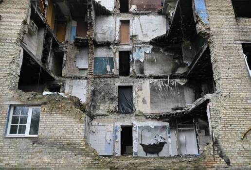 Jenes Gebäude soll von einer russischen Bombe getroffen worden sein.