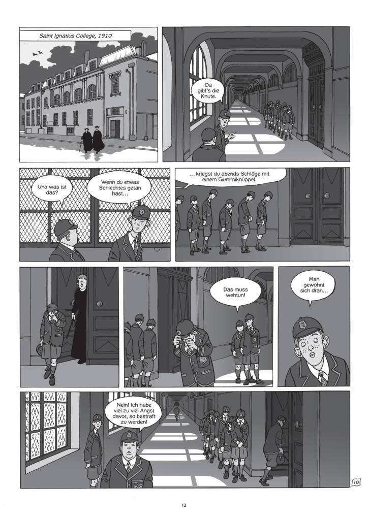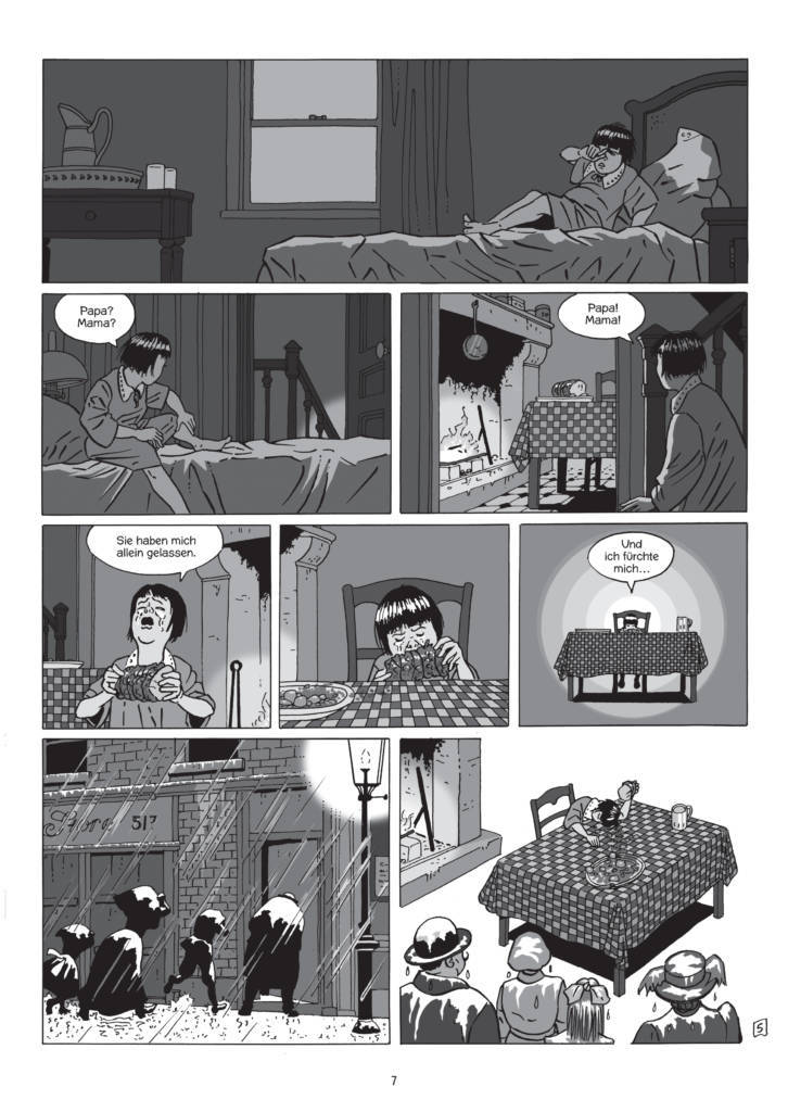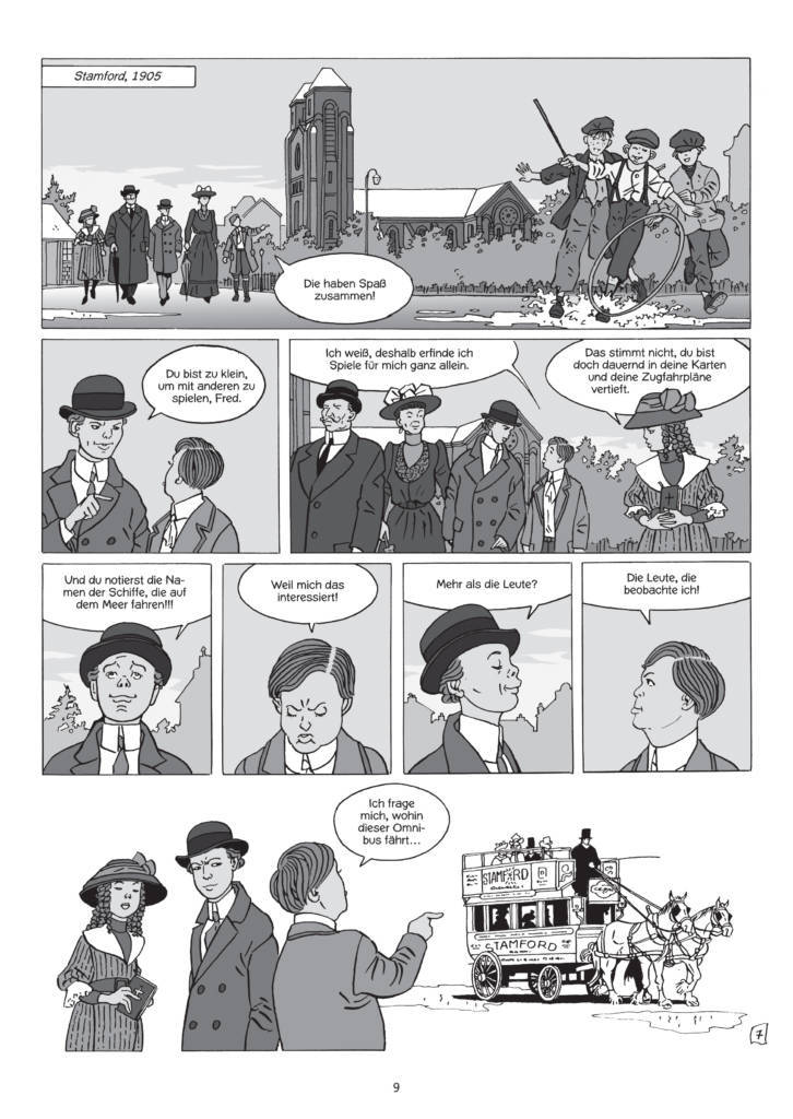 Eine voluminöse neue Comic-Biographie, die in zwei Bänden erscheint (Teil 1, „Der Mann aus London“, seit Januar 2021 in deutscher Übersetzung bei Splitter, 24 Euro), geht nun einen etwas anderen Weg. Sie trennt den auf dem alten und neuen Kontinent arbeitenden Regisseur voneinander, sie erzählt ausführlich über den Ehemann und Sohn, den Jesuitenschüler, den Theater-Narren, den manischen Bühnenarbeiter, den Bewunderer kühler Blondinen, den schon in der Kindheit korpulenten Körpermenschen, der mit buchstäblich seinem Bauch entschied und wohl auch wegen seiner Statur jede Kritik abprallen ließ.