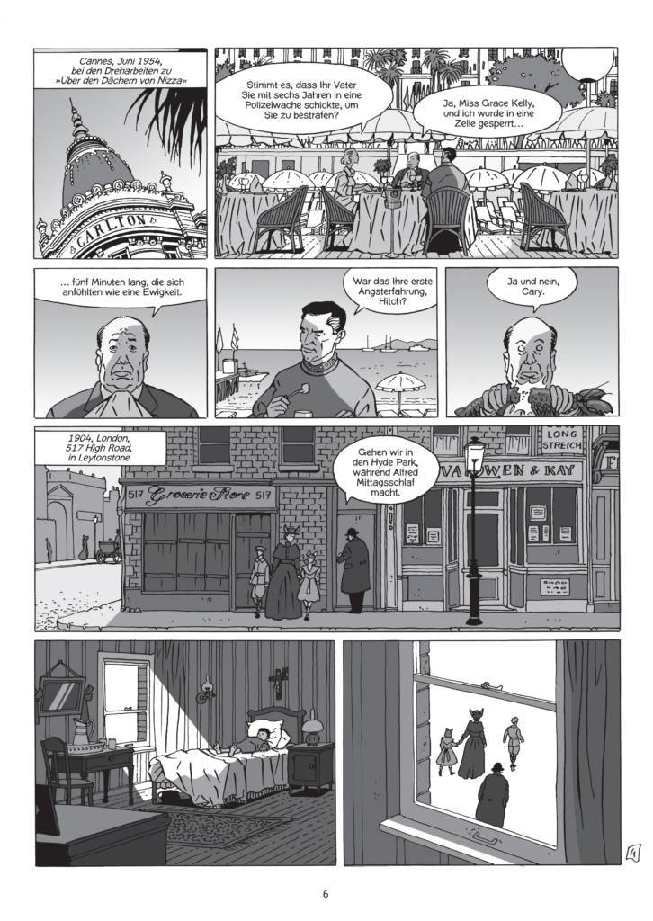 Die mit dieser nuancenreichen graphischen Biographie hinterlegte Anerkennung von Hitchcocks Lebensleistung hat anders als bei Truffaut kaum etwas mit unvoreingenommener Liebe zu tun, sondern sehr viel mit Respekt. Das hätte Hitchcock, dessen berüchtigte Mimik sich in der natürlich nicht nur den reinen Fakten folgenden Graphic Novel in Dutzenden Variationen im Stile eines großen Komikers verbiegt, wohl selbst ein süffisantes Lächeln abgetrotzt.