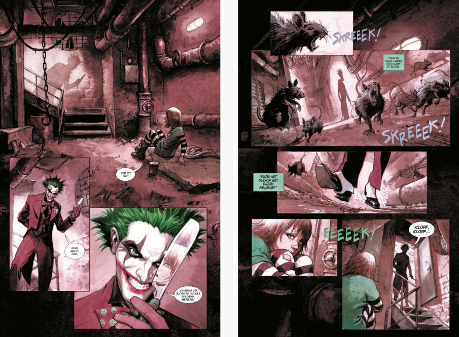 Eigentlicher Antrieb der sehr kurz gehaltenen Geschichte ist aber ein Mädchen, das möglicherweise Bruce Waynes Tochter sein könnte und das zwischen die Fronten von Batman und dem Joker gerät. Natürlich lässt es sich Marini nicht nehmen, den Wahn des Jokers mit allerhand eindrucksvollen Fratzen zu illustrieren. Zugleich zeigt er Batman zunächst als kühlen Unsympathen, der ungeahnte Vatergefühle entwickelt. „Der dunkle Prinz“ ist eine ästhetische, für das Sujet auffallend helle und kontrastive Augenweide – und Marini nutzt die Chance eindrucksvoll, sich seinen ganz eigenen Reim auf die Batman-Welt zu machen. Teil eins liegt seit Ende Januar im Handel, auf die Fortsetzung müssen Leser noch bis Juni warten.