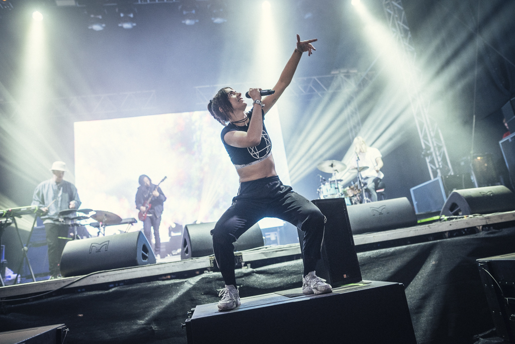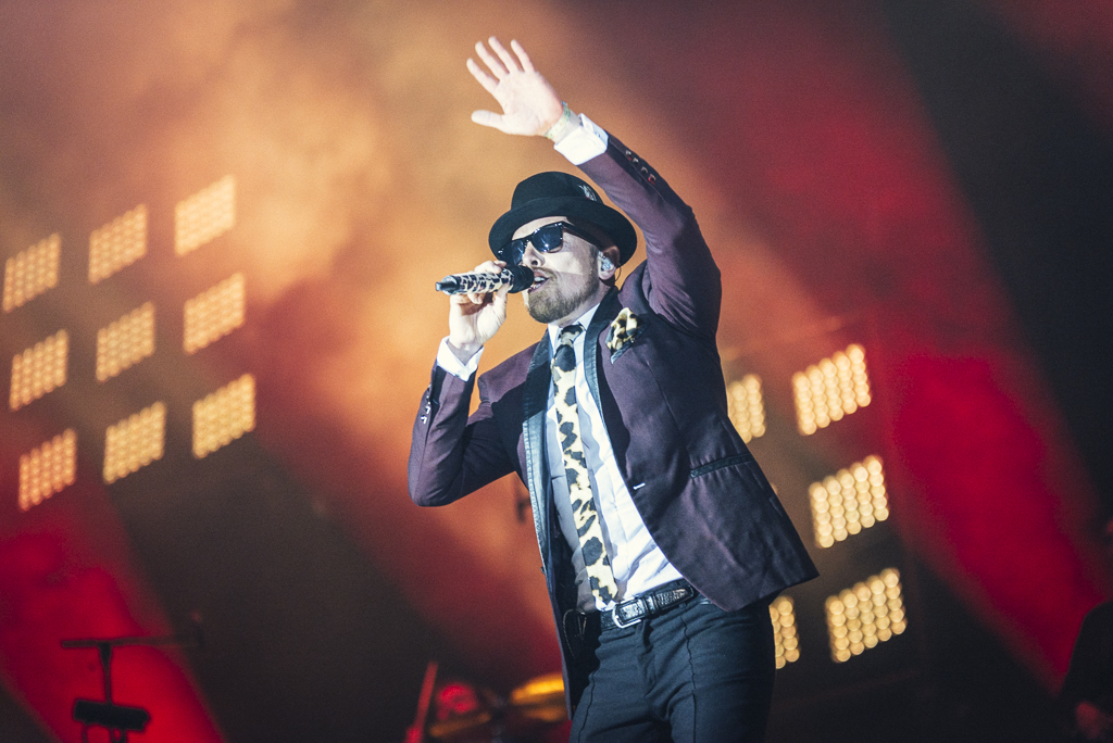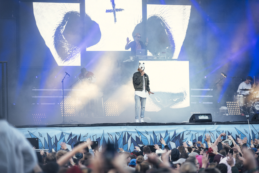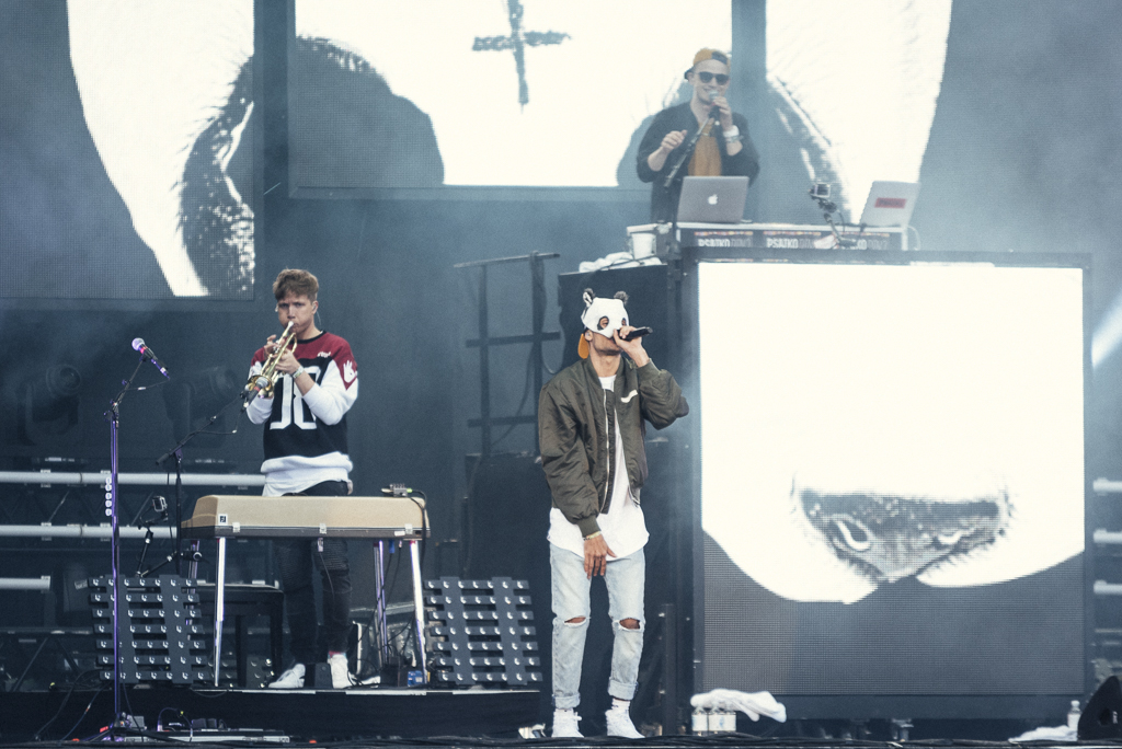Cro ist schon lange bei den oberen 10.000 angekommen, freut sich aber immer noch sichtlich wie ein kleines Kind über die Zuneigung seiner zum großen Teil weiblichen Fans. Die singen die groovend-entspannten Stücke wie „Easy“ und all die anderen zahllosen Boy-meets-Girl-Szenarien dankbar mit. Carlo Waibel, wie der Mutlangener mit bürgerlichem Namen heißt, ist eigentlich kein Showman, auch kein Womanizer. Eher hat man das Gefühl, dass er seine Maske trägt, um seine natürliche Schüchternheit zu verbergen. Dieser Schmuserap ist für all die aufgeregten jungen Mädchen, die zum ersten Mal auf einem Festival sind, vielleicht so etwas wie das Äquivalent zu einem Alcopop. Zum Schluss gibt es dann noch ein bonbonfarbendes Feuerwerk – das den zahlreichen anderen Rapperkollegen, die an diesem Tag die „Bluestage“ unsicher machen, nicht vergönnt ist. Am Ende siegt Freundlichkeit eben doch über loses Mundwerk.