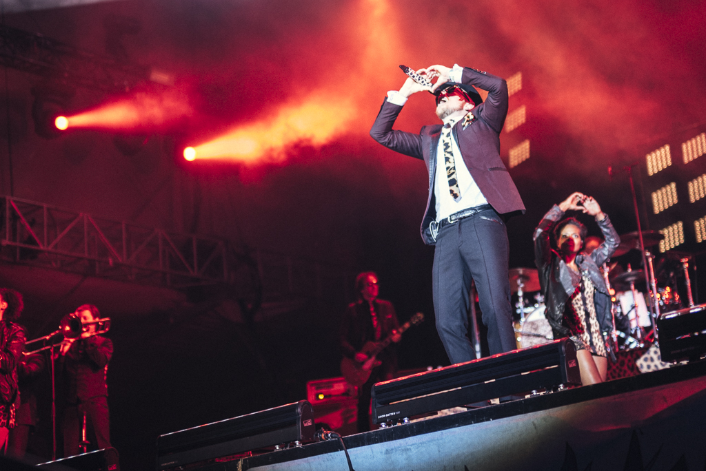 Farin Urlaub sorgt dann schon für einen gewissen Stilbruch, als er mit seinem Racing Team die „Green Stage“ entert. Mit weiblichem Chor im Rücken und durch ein Bläser-Ensemble verstärkt, wirken nicht nur die neuen Songs aus dem Album „Faszination Weltraum“ immer ein Stück größer, als sie sind. Auch solo spielt der große Blonde letztlich Ärzte-Lieder ohne Ärzte – selbst den eingefleischtesten Fans dürften mittlerweile die zuweilen sogar geschmacklosen Selbstzitate und ewiggleichen Reimschemata (wo der Herzinfarkt wie selbstverständlich mit dem Wörtchen Sarg vermählt) zuviel geworden sein. Allerdings gehört Urlaub, seinem Künstlernamen entsprechend, zu den entspanntesten Naturen, die sich in dieser Galaxie denken lassen und so befindet er sich mit dem gutgelaunten Publikum in einem niemals launigen Dialog, der so etwas wie echte Verbundenheit ausdrücken mag. Wenngleich der jugendliche Spaß von einst immer mehr einer professionellen Show-Routine gewichen ist, so ist doch die Verbindung zwischen Künstler und Anhänger hier auf eine berückende Art und Weise vorbildlich. Da ist es passend, dass das „Abschiedslied“ als letzter Song des Sets keine Spur wehmütig daherkommt – schließlich wird so einer wie Farin Urlaub in angespannten Zeiten wie diesen mehr als gebraucht, Plattitüden hin oder her.