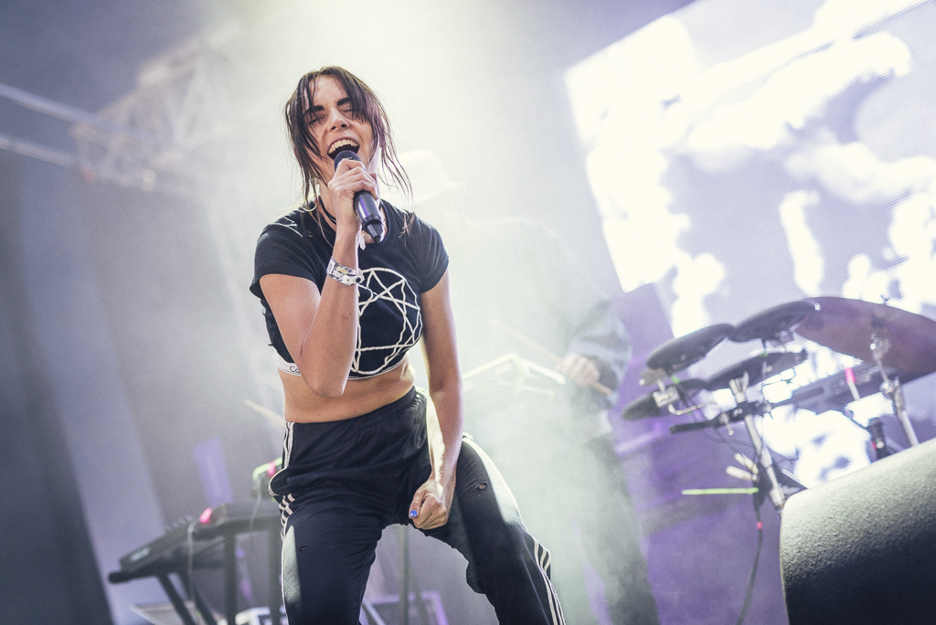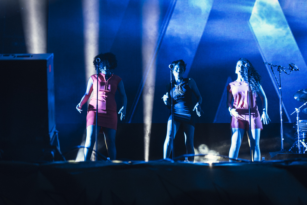 Noch geschmeichelt vom raumgreifeneden Wohlklang der Schwedinnen, wird es nun hektischer: Future Islands entführen stilvoll in die 80er. Das größte Kapital der Band ist Sänger Gerrit Welmers, der sich mit Emphase in die Songs wirft, mit den Armen rudert, auf den Bühnenboden wirft, springt und brüllt. Mit skinny jeans, orangenem Hawaiihemd und theatralischen Gesten sieht er aus wie eine Mischung aus Morrissey und Joaquin Phoenix. Die Bereitschaft sein letztes Hemd zu geben, sich komplett zu verausgaben, wird vom Publikum euphorisch goutiert, vor allem ihr Hit „Seasons“ wird wildtanzend befeiert.