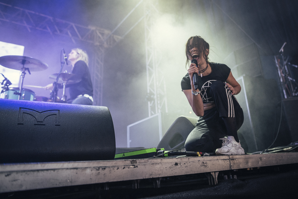 Die eigentlichen Feiergroßmeister sind allerdings Die Antwoord, denn mit ihrem muskelbepackten RaveRap verbinden sie auf derart impulsive und sicher auch martialische Art und Weise all das, was die Popmusik in den letzten Jahren an den Randzonen des Kommerzes verkommen lassen hat. Sängerin Yolandi Visser, mit weißumrandeter Augenpartie, piepst ihre kaum verständlichen Ansagen ins Publikum, ihr hühnengleicher Kollege Ninja – der seinem Namen alle Ehre macht und nach etlichen Bädern im Publikum freudestrahlend seinen durchtrainierten Allerwertesten entblößt – ist hingegen für die knallharten Sprüche („Fuck The Rules!“) und vorpreschenden Gesangsparts zuständig. Dann brettern allerdings die messerscharfen Beats dazwischen und Publikum wie Musiker hüpfen derart ungestüm, dass man noch Kilometer weiter leichtzuckende Erdstöße vernommen haben muss. Ein merkwürdiges Gespann, diese Elfe und der Testosteronkoloss, doch die Südafrikaner haben zur Zeit, man verzeihe den Kalauer, die richtige Antwort auf den kommerziellen und künstlerischen Overkill der Rap- und Danceszene parat.