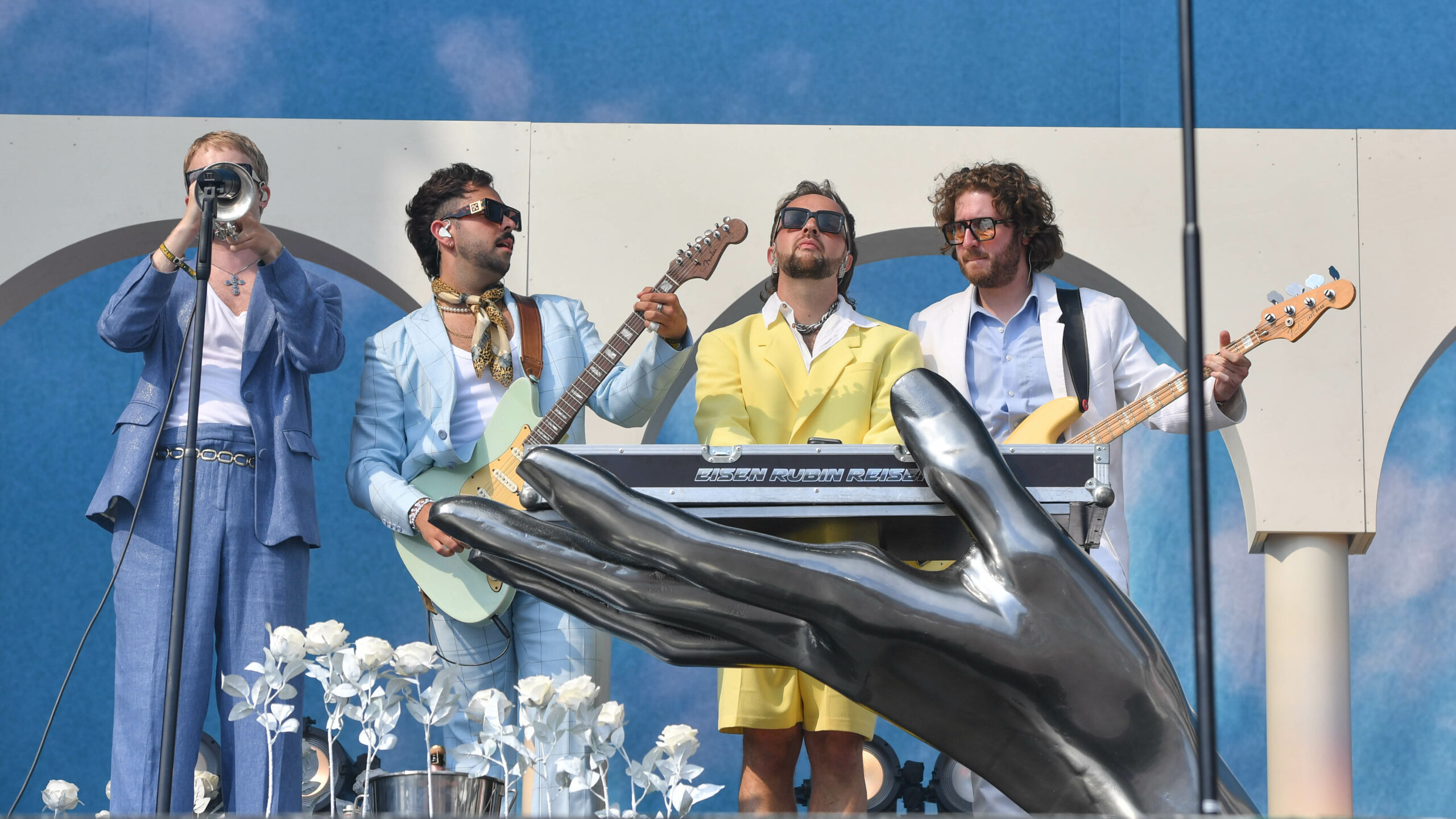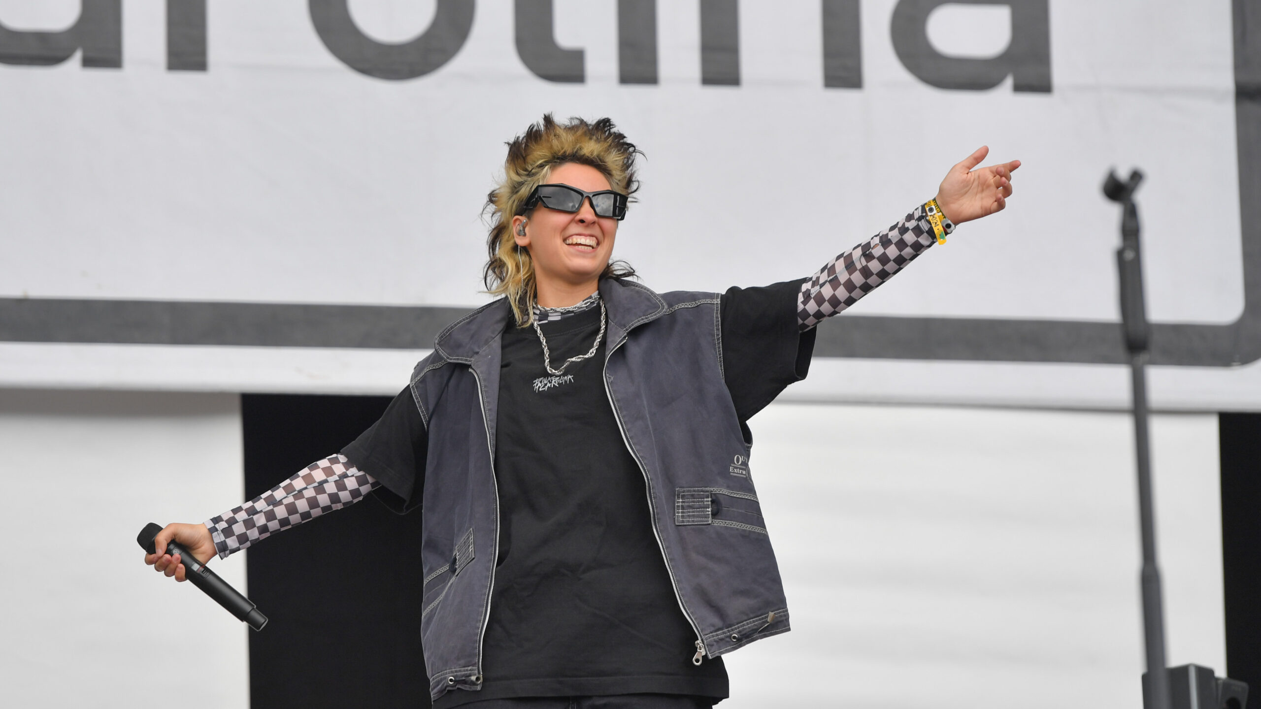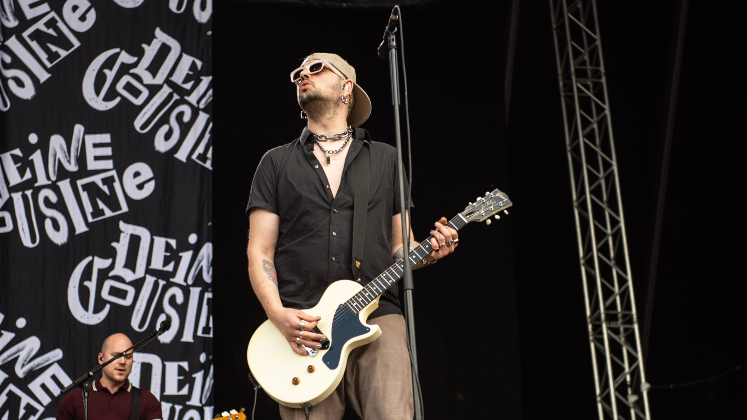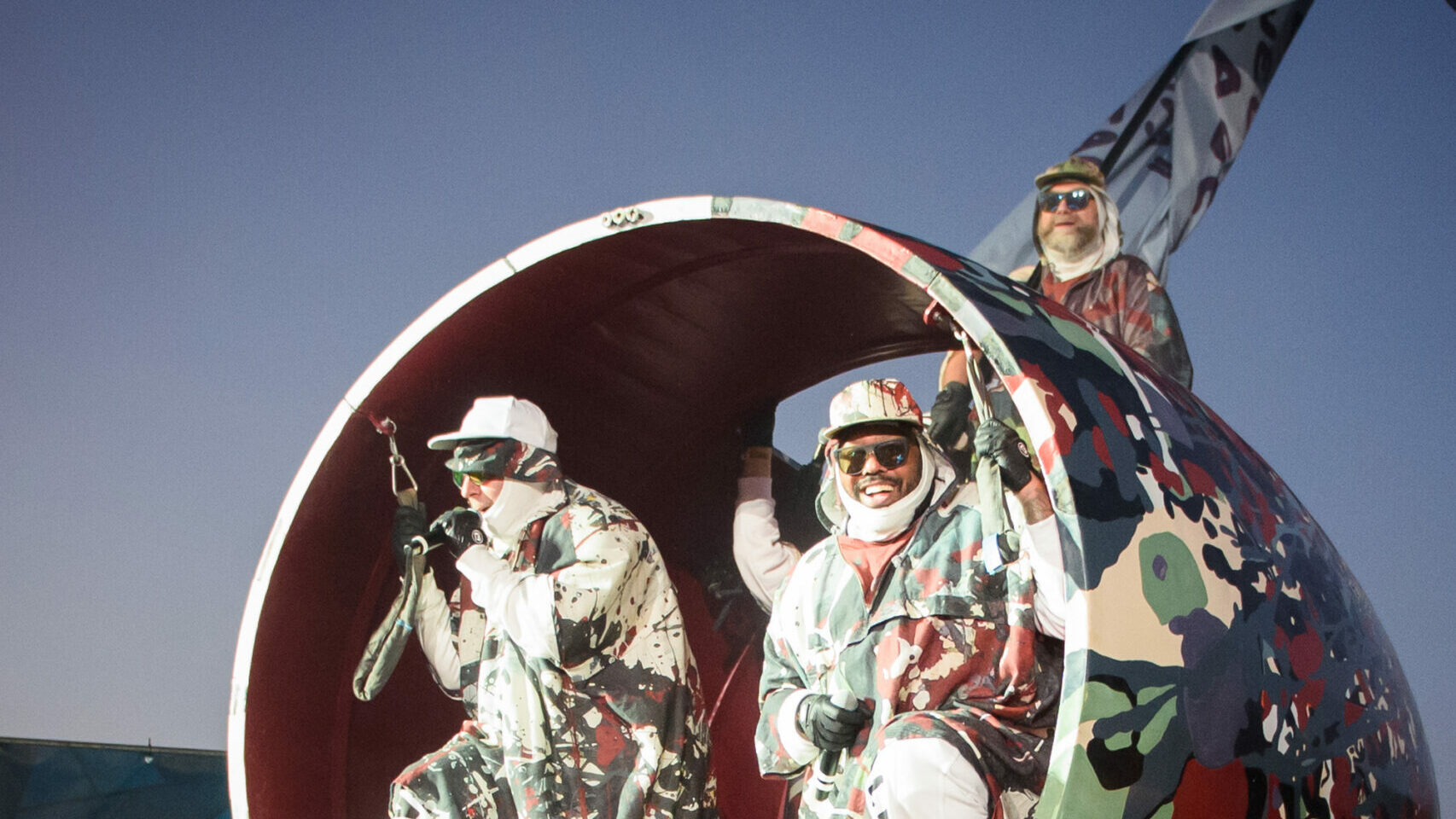 In den ersten Reihen vor der River Stage schwenkt ein Deichkind-Fan eine Fahne, die den Ton der Show angibt: „Kein Mensch ist illegal“ – und ja, die Welt ist fertig, aber „wir gönnen uns das Privileg der Hoffnung“. So rollen die Rapper zu „Bück dich hoch“ auf mit den Buchstaben „FCK AFD“ beklebten Bürostühlen über die Bühne, beeindrucken mit einstudierten Choreos und blinkenden Tetraeder-Helmen und gehen mit der Crowd ein paar Gesangsübungen durch. Auch wenn die FOMO angesichts der Deutschlandtrikot-Schwemme am Sonntag bei einigen Fußballfans sehr groß sein muss, will sich keiner diese Show entgehen lassen. Spätestens als das Fass reinrollt und sich seinen Weg durch die Menge bahnt, gibt es kein Halten mehr.