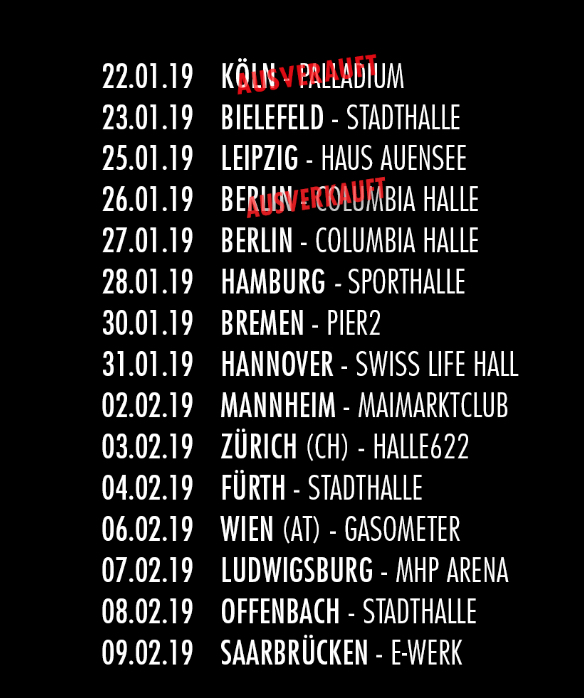 AmazonDie ersten vier Shows im Frühling 2018 waren alle restlos ausverkauft. Auch die kommenden Auftritte sind heiß begehrt. Aufgrund der hohen Nachfrage ist bereits ein Zusatztermin in Berlin anberaumt und auch das Köln-Konzert ist schon ausverkauft. Tickets gibt’s hier.