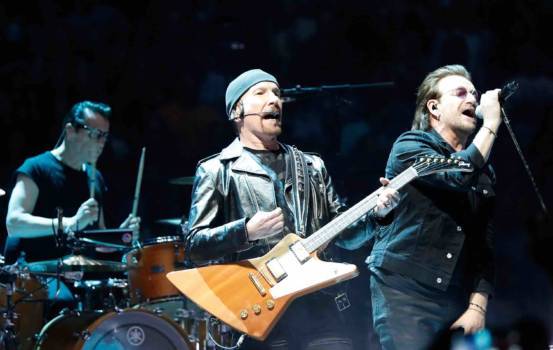 So richtig ausgereift wirkt die Technik auch nicht, als Bono mit Blick in die Kamera digital maskiert wird: Sein Gesicht gerät die ganze Zeit aus dem Fokus, und die Maske verschwindet. Das Ganze erinnert an die Trash-App „MSQRD“ („Masquerade“), mit denen man per Handykamera in die lustigsten Wesen verwandelt werden kann. Aber: Könnten U2 nicht auch Gimmicks hervorholen, die nicht jeder selbst auf seinem Mobiltelefon hat? Was waren das für einfache Zeiten noch, als Bono vor fast zehn Jahren sein Publikum lediglich aufforderte, Mobiltelefone hochzuhalten (als Lichtquelle, oder um eine SMS an die „One“-Wohltätigkeitsorganisation zu senden).