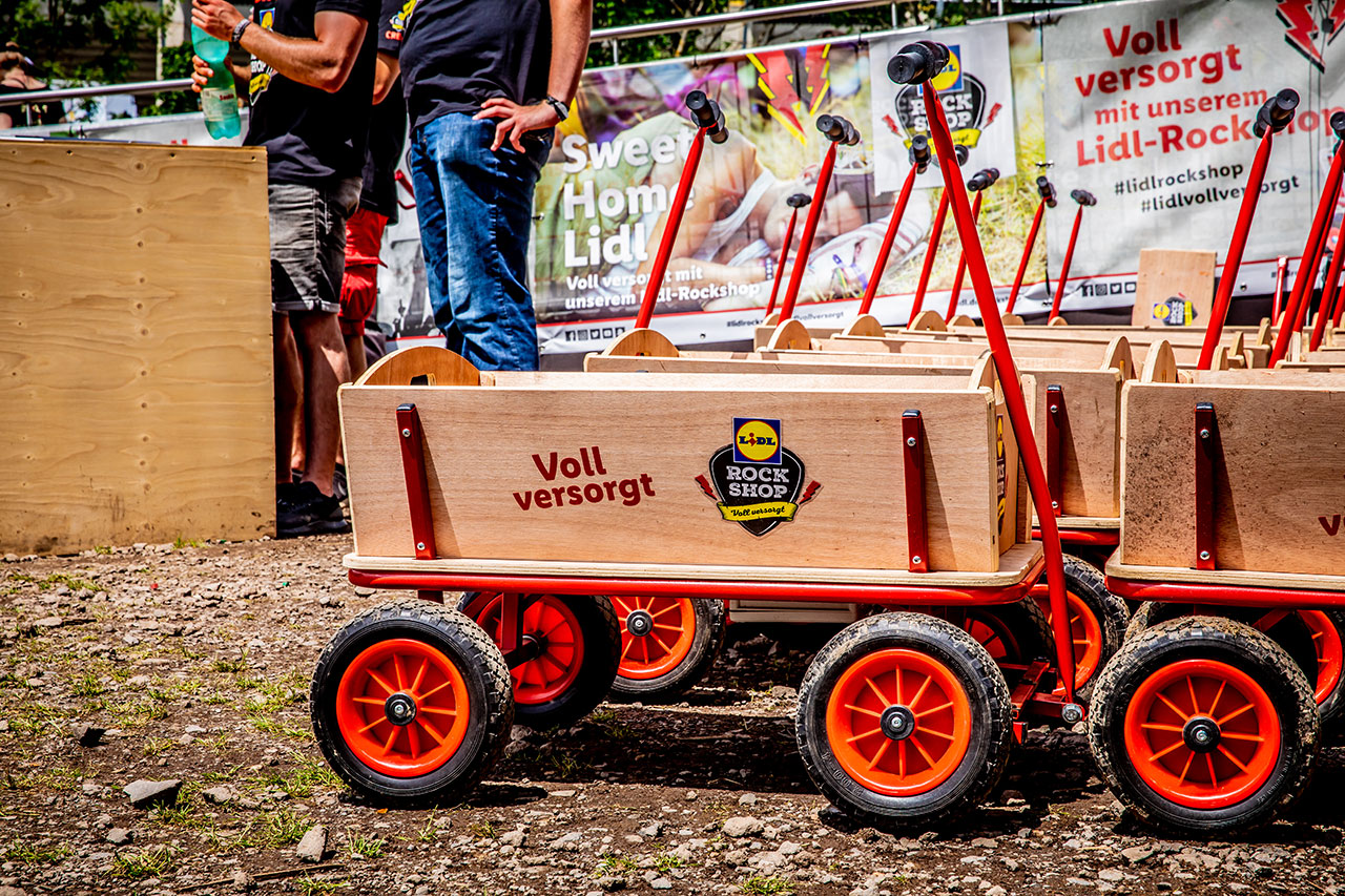 Wer dann nicht mehr laufen konnte, nahm sich einfach eine Crew-Karre: 80 Mal machten Bollerwagen müde Beine wieder munter. Dabei sorgten 600 Ersatzmuttern bei 150 Reparaturen dafür, dass dem Rock’N’Rollen nichts in den Weg kam.