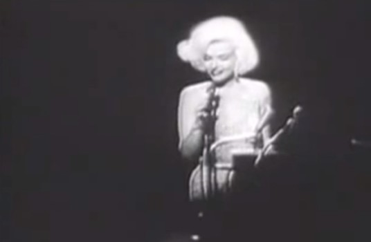 Etwas mehr als ein Jahr später, im März 1962, traf Monroe Berichten zufolge auf einer Party von Bing Crosby in Palm Springs das erste Mal auf John F. Kennedy. Es war nur wenige Wochen vor ihrem berühmten öffentlichen Auftritt bei einer Spendenaktion der Demokraten am 19. Mai 1962, bei dem Monroe ihre schwermütige Darbietung von „Happy Birthday, Mr. President“ sang. Für diesen Anlass trug sie ein Kleid des Designers Jean Louis. Das die Illusion vermittelte, sie sei vollkommen nackt.
