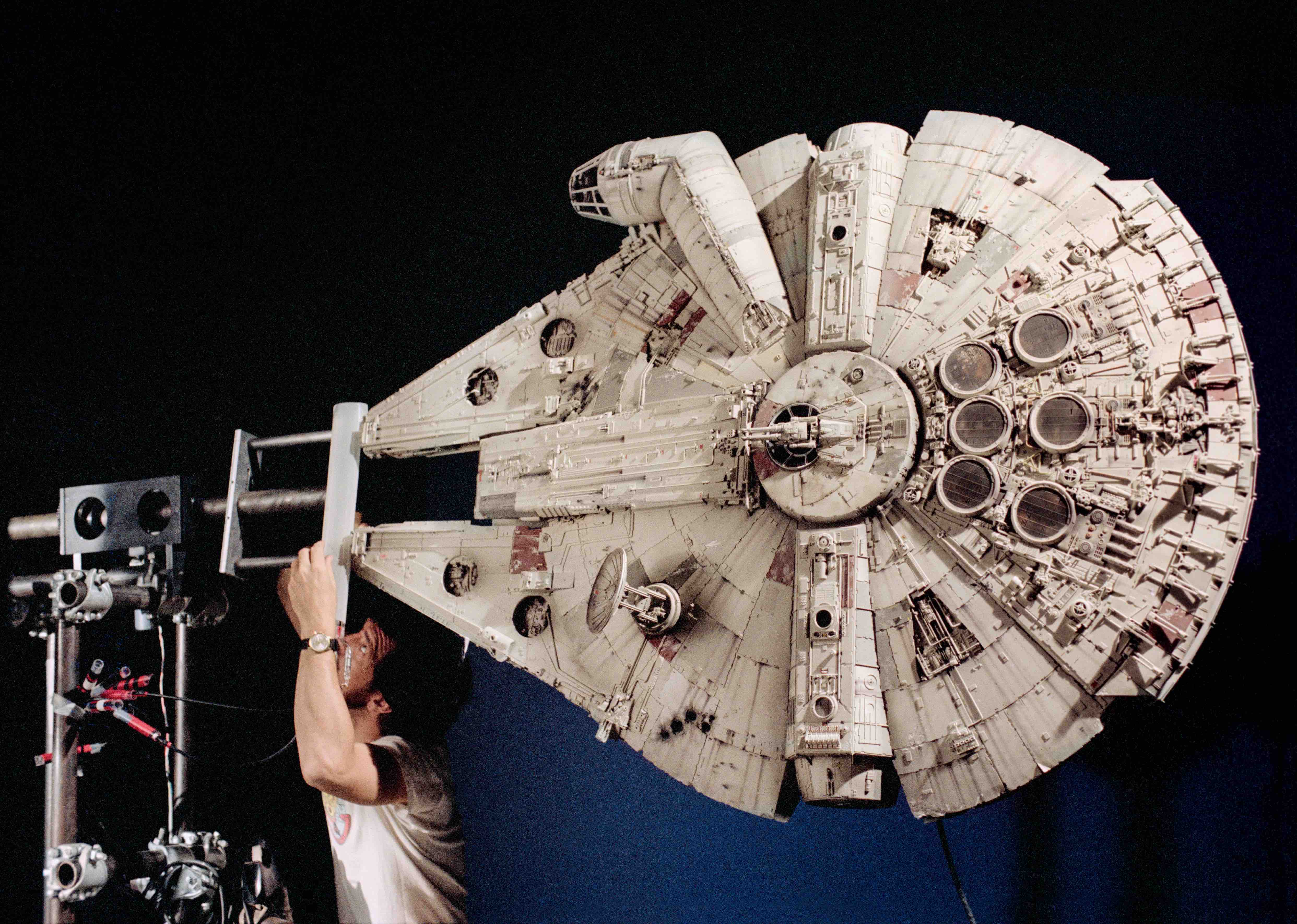Noch aufschlussreicher sind die Fotos mit Solo-Darsteller Harrison Ford (Bild 1). Der Mann war zu Drehbeginn 35, ein gelernter Tischler und alles andere als begeistert von der Figur des durchgeknallten Schmugglers und seines bepelzten Freund Chewbaccas. Hatte Ford überhaupt noch Bock? Man würde gerne in ihn hineinsehen.