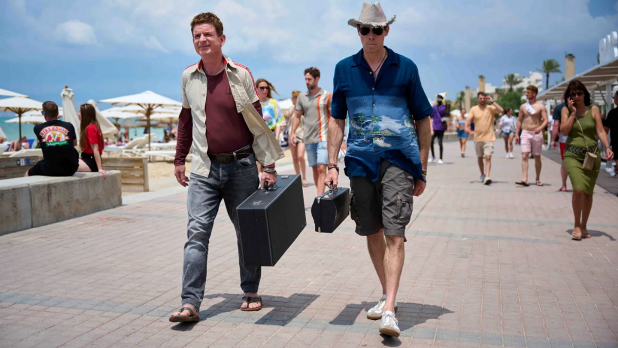 Heinz Strunk ist nun schon so lange mit seinen Romanen der Liebling des literarischen Feuilletons, dass man fast vergessen hat, wie albern er sein kann. „Last Exit Schinkenstraße“ erinnert einen aber wieder daran. Strunk ist Autor der Comedyserie, hat die Songs geschrieben und gibt sich bereitwillig als Hauptfigur mit viel zu kurzer Ponyfrisur der Lächerlichkeit preis. Peter ist ein Saxofonist, der mit dem Trompeter Torben (Marc Hosemann) seit 30 Jahren als Tanzmusiker arbeitet. Als die beiden gefeuert werden, versuchen sie mit eigenen Partysongs ihr Glück am Ballermann – und aus Peter wird Pierre Panade.