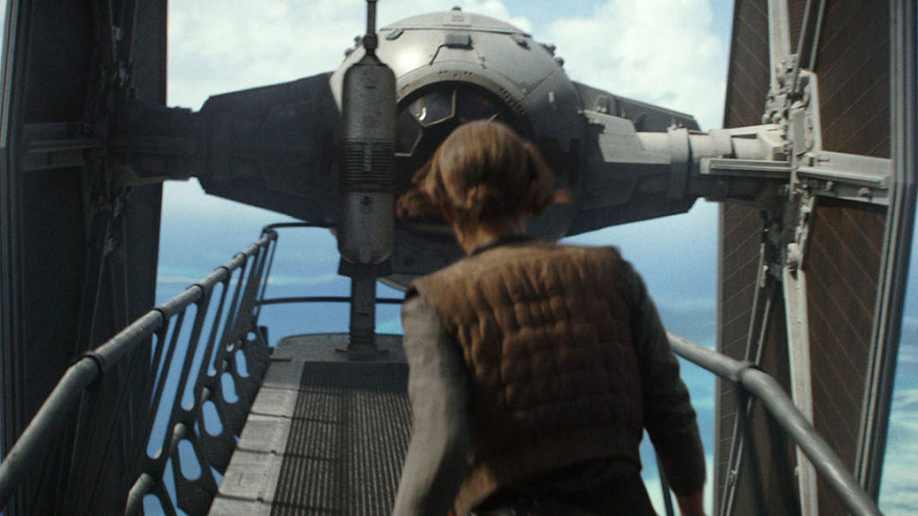 Im „Rogue One“-Trailer gibt es eine ikonische Szene, in der ein riesiger TIE-Fighter vor Jyn Erso schwebt und ihr den Weg versperrt. Im Film fehlt die Szene allerdings, Gareth Edwards begründet dies mit „Verfeinerungen am dritten Akt“ und spielt dabei vermutlich auf die umfangreichen Nachdrehs an.