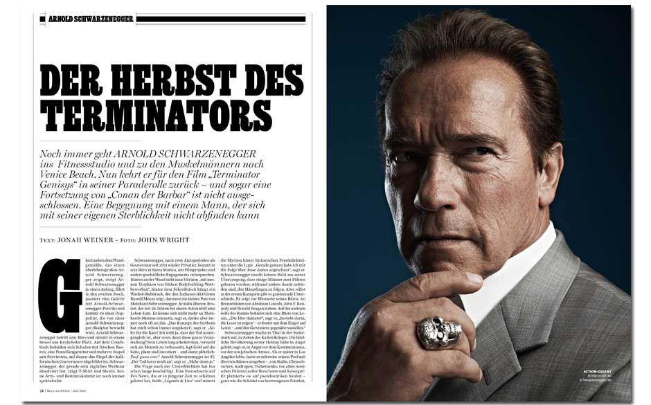 Um über seine Paraderolle in „Terminator Genisys“ zu sprechen, empfing der Schauspieler den RS-Autor Jonah Weiner in Los Angeles, wo die lebende Action-Legende noch immer ins Fitnessstudio und zu den Muskelmännern in Venice Beach geht