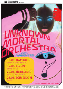 Mit einer Mischung aus Psychedelic Rock, Soul und Indie treibt Unknown-Mortal-Orchestra-Kopf Ruban Nielson seit 2011 sein Unwesen. Von Portland aus begeistert der gebürtige Neuseeländer nicht nur die Musikszene seines Heimatlandes, sondern machte auch in Europa auf sich aufmerksam. Als Vorband von Grizzly Bear wurde das „Orchester“ auch hierzulande einem größeren Publikum bekannt.