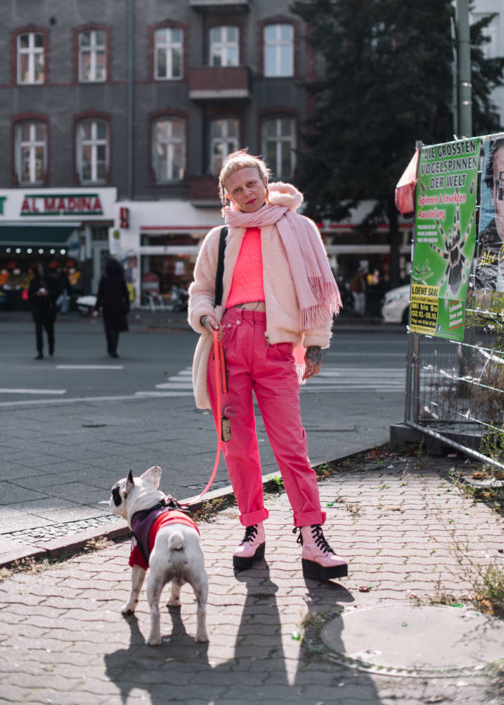 Typisch für Berlin ist, dass du einfach tragen kannst, was du willst. Zum Beispiel wenn du eine Jogginghose mit roten Cowboyboots kombinieren willst, dann kannst du das machen. Mir gefällt es, dass du in Berlin auf der Straße nicht wirklich verurteilt oder beschimpft wirst für deinen Style. Berlin-Style ist für mich einfach kein wirklichen Style zu haben.
