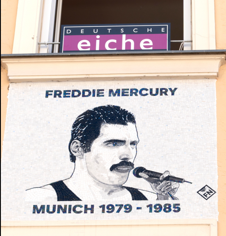Musik Ehrung in München für Queen-Sänger Freddie Mercury Ein Mosaik an der Fassade der Deutschen Eiche erinnert an den Queen-Frontmann Von Nicola Bardola
