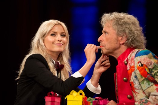 Kein Wunder: Was in der Geburtstags-Show an Grüßen von prominenten Wegbegleitern wie Arnold Schwarzenegger, Lionel Richie oder Heidi Klum aufgefahren wurde, würde die meisten Jubilare überfordern. Nicht jedoch Gottschalk, der zunehmend aufgekratzter wurde. Schließlich ertrug er sogar den Kurzauftritt von Hugo Egon Balder, der irgendwo an einem Tresen saß und mehrmals auf seine scheußliche Alkoholiker-Talkrunde „Der Klügere kippt nach“ hinwies.